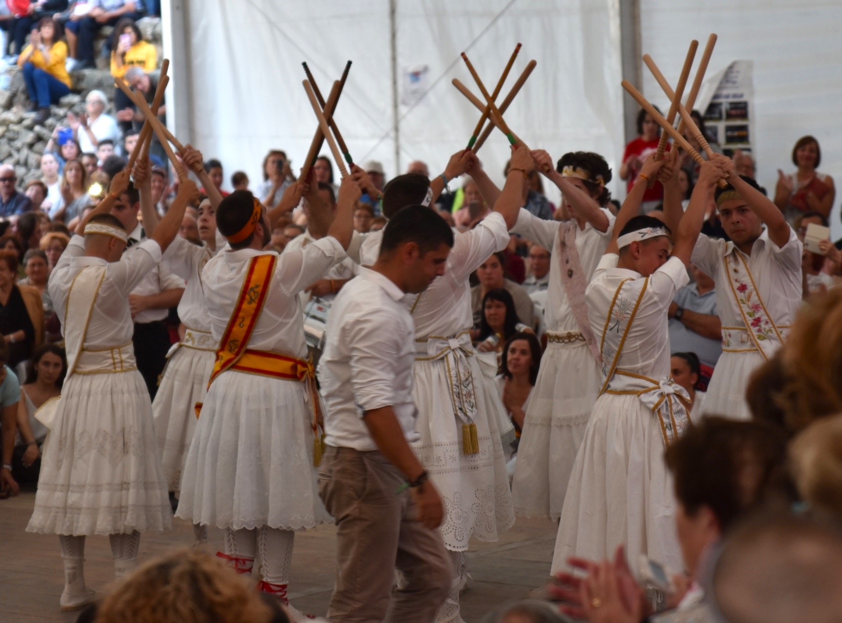 Paloteo “Danzantes de Moya “ con su Maestro de Danzantes ,D. Constancio